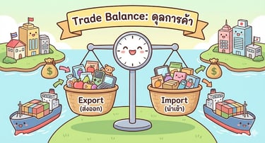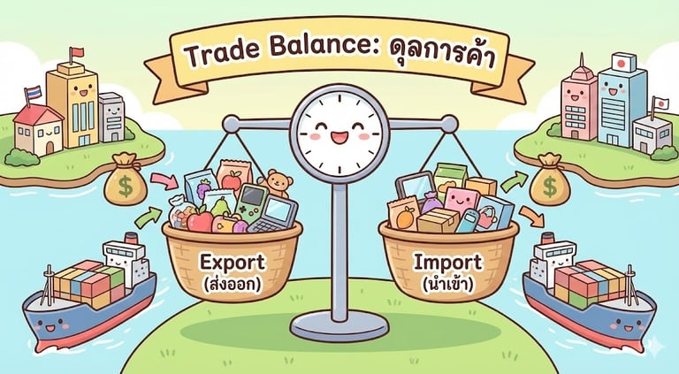 ก่อนที่เราจะไปพบกับบอสใหญ่ (Fed) เราต้องแวะดู "กระเป๋าตังค์ของประเทศ" กันก่อนครับ เพราะประเทศไม่ได้อยู่คนเดียวในโลก ต้องมีการซื้อขายกับเพื่อนบ้าน และนี่คือที่มาของคำว่า Trade Balance