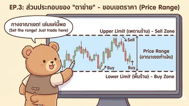 Upper Limit (เพดานร้าน/ราคาสูงสุด): จุดที่เราคิดว่า "แพงสุดๆ แล้ว" เราจะตั้งป้อมขาย (Sell) จนถึงเส้นนี้