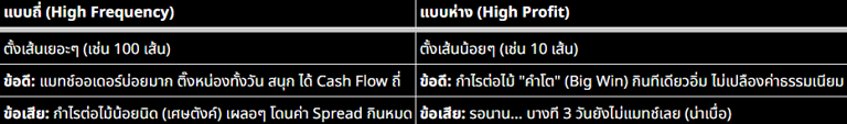 ถ้ากำไรน้อยกว่า 0.3% - 0.5% (หรือน้อยกว่าค่า Spread) -> ให้ลดจำนวนไม้ลง (ทำให้ห่างขึ้น) ไม่งั้นขาดทุนค่าธรรมเนียม