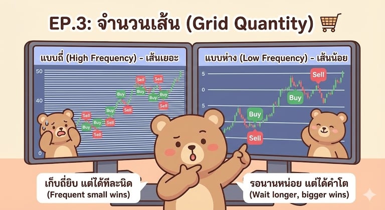 การตั้งค่า Grid ก็เหมือนการ "ออกแบบชั้นวางสินค้า" ในร้านของเราครับ ถ้าเราวางชั้นวางของ "ถี่เกินไป" ลูกค้าก็เดินลำบาก (เปลืองค่าธรรมเนียม) ถ้าเราวาง "ห่างเกินไป" ของก็มีน้อย (รอนานกว่าจะแมทช์)