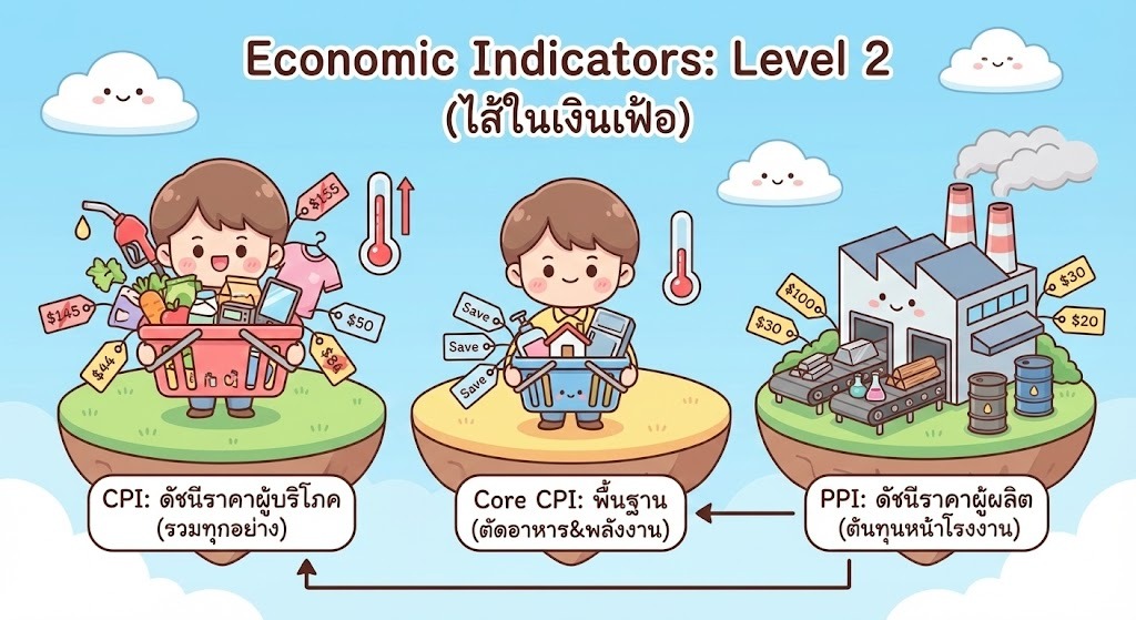 หน้าที่: เป็น "นักพยากรณ์" (Leading Indicator) ถ้าวันนี้โรงงานต้นทุนพุ่ง (PPI ขึ้น) อีก 1-3 เดือนข้างหน้า ราคาของในร้านค้า (CPI) ก็จะแพงตามครับ